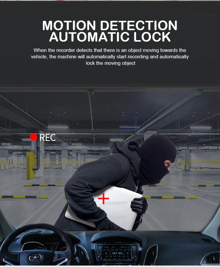 - Automatically saves and locks footage during sudden braking, accidents, or impacts.